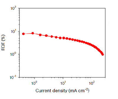Solution treated metal halide perovskites have received great attention in the fields of information display, lighting, and energy production due to their excellent optoelectronic properties, good flexibility, and potential low cost. In recent years, efficient perovskite light-emitting diodes (LEDs) with external quantum efficiency (EQE) exceeding 20% have been reported. However, these achievements were based on lead halide perovskites, but the toxicity of lead has attracted widespread attention. Tin based perovskites have shown enormous potential due to their environmental safety and excellent optoelectronic properties in various lead-free perovskites. Recently, a research team led by Academician Huang Wei and Professor Wang Jianpu from the School of Flexible Electronics (Future Technology) at Nanjing Tech University has made significant breakthroughs in environmentally friendly perovskite light-emitting diodes, increasing the efficiency of tin based perovskite LEDs to 8.3% for the first time internationally.