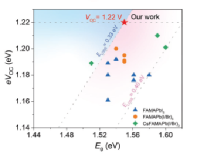 At present, organic inorganic metal halide perovskite solar cells (PSCs) are developing rapidly, and the certification efficiency has exceeded 25.7%. However, its efficiency still lags behind the Shockley Queisser theory, mainly due to the high energy loss of the device's open circuit voltage (Voc). Due to the polycrystalline nature of solution prepared perovskite films, grain boundary defects as non radiative recombination centers greatly affect the VOC of devices and limit further improvement in device efficiency. In view of this, on December 11, 2022, the team led by Wang Fangfang and Qin Tianshi from Nanjing University of Technology published the latest research results in AFM, which effectively passivated defects, reduced non radiative recombination, and achieved an ultra-high voltage of 1.22V, achieving an efficiency of 24.21%.