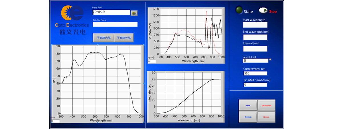 This system runs stably and can obtain real-time data such as IPC integrated current, etc. The full spectrum measurement range is 200~1100 nm, which can be extended to the widest range of 200~2000 nm. It has high monochromatic light intensity per unit, providing higher signal-to-noise ratio. It also has high stability and repeatability, with a repeatability of no less than 99% and a maximum of 99.5% for multiple measurement results.