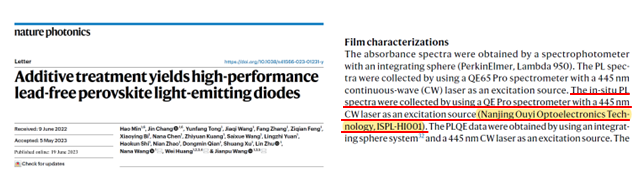 【1】 H. Min, et al. Additive treatment yields high-performance lead-free perovskite light-emitting diodes. Nat. Photon.,17, 755. (2023)