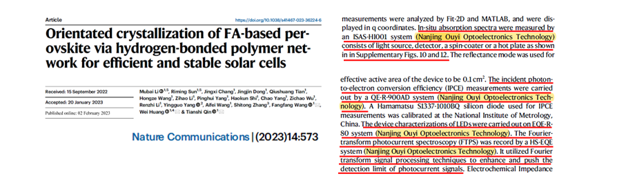 【1】 M. Li, et. al. Orientated crystallization of FA-based perovskite via hydrogen-bonded polymer network for efficient and stable solar cells. Nat. Commun., 4, 573. (2023)